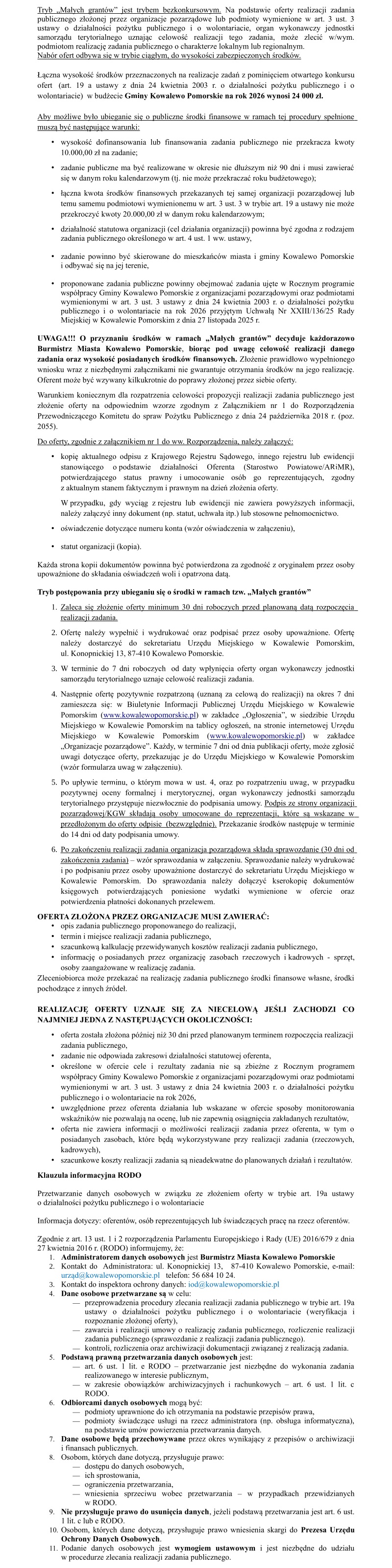 „MAŁE GRANTY” – informacja o możliwości składania ofert