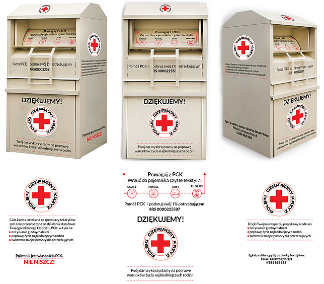 Polski Czerwony Krzyż jest właścicielem pojemników i odpowiada za ich regularne opróżnianie, stan techniczny. Mając na uwadze ogólną estetykę tych miejsc, prosimy o sygnalizowanie niepokojących sytuacji, w razie przeładowania czy uszkodzenia kontenerów. Liczymy na współpracę w tym zakresie i zgłaszanie wszelkich incydentów do Urzędu Miejskiego.