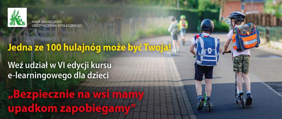 Po raz szósty Kasa Rolniczego Ubezpieczenia Społecznego zaprasza dzieci rolników do udziału w kursie e-learningowym „Bezpiecznie na wsi mamy – upadkom zapobiegamy”, który w nowoczesnej formie przybliża wiedzę o zagrożeniach wypadkowych występujących w gospodarstwach rolnych, a także uczy prawidłowych zachowań podczas przebywania na terenie obejścia.
