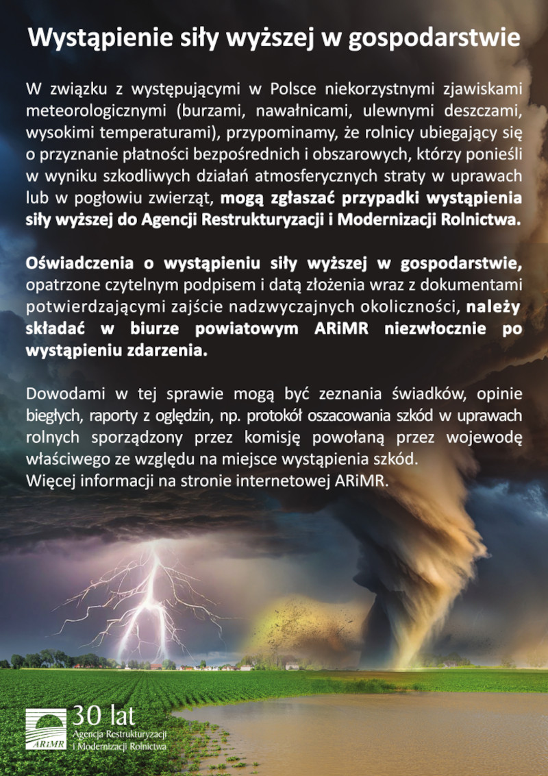 Wystąpienie siły wyższej w gospodarstwie