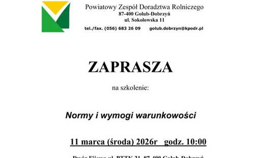 Zaproszenie na szkolenie "Normy i wymogi warunkowości" w Kowalewie Pomorskim